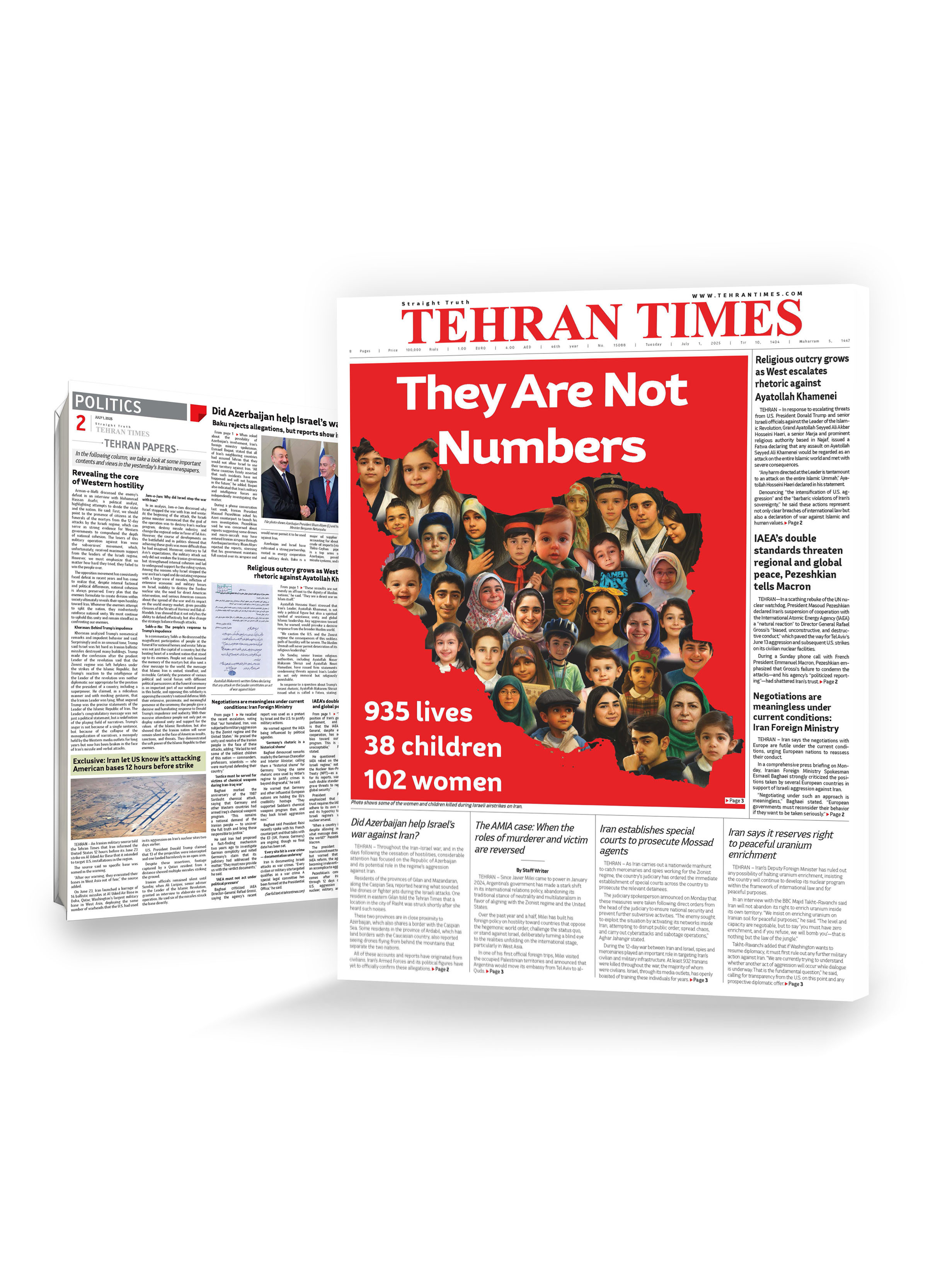 "Tehran Times" Newspaper is the oldest English-language daily in Iran and one of the most reputable non-Persian publications in the country. Over the years, it has influenced international media by publishing exclusive reports, exposés, and creative front pages. Its first issue was published less than ۹۰ days after the victory of the Islamic Revolution in February ۱۹۷۹. Today, it remains active in international media spaces. The "Tehran Times" is published in ۱۲ printed pages and an online edition, covering political, economic, social, sports, cultural, international, and tourism news. Its main readers include students, language learners, linguists, tourists, foreign guests, international media, and those interested in Iran. It is published by Mehr News Agency, with Mohammad Sarfi as editor-in-chief and Mohammad-Mehdi Rahmati as managing director.