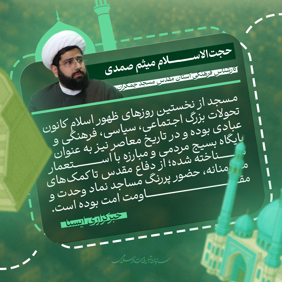 از منظر اسلام، مسجد نه تنها عبادتگاه که پایگاهی برای فعالیت‌های اجتماعی و حل مشکلات محله است؛ همزمان با روز جهانی مسجد، مروری می‌کنیم بر نظر برخی از اساتید و چهره‌های قرآنی کشور در خصوص نقش اجتماعی مساجد.