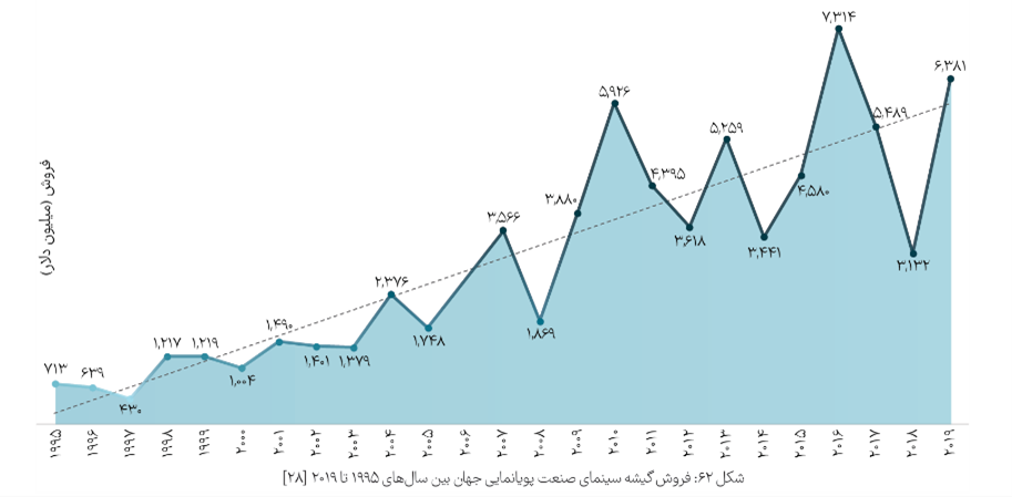 مجموع فروش گیشه پویانمایی‌ها در جهان بین سال‌های ۱۹۹۵ تا ۲۰۱۹ از ۷۱۳ میلیون دلار به ۶ میلیارد و ۳۸۱ میلیون دلار رسیده است؛ جهشی که اهمیت روزافزون این صنعت را در میان مخاطبان نشان می‌دهد.