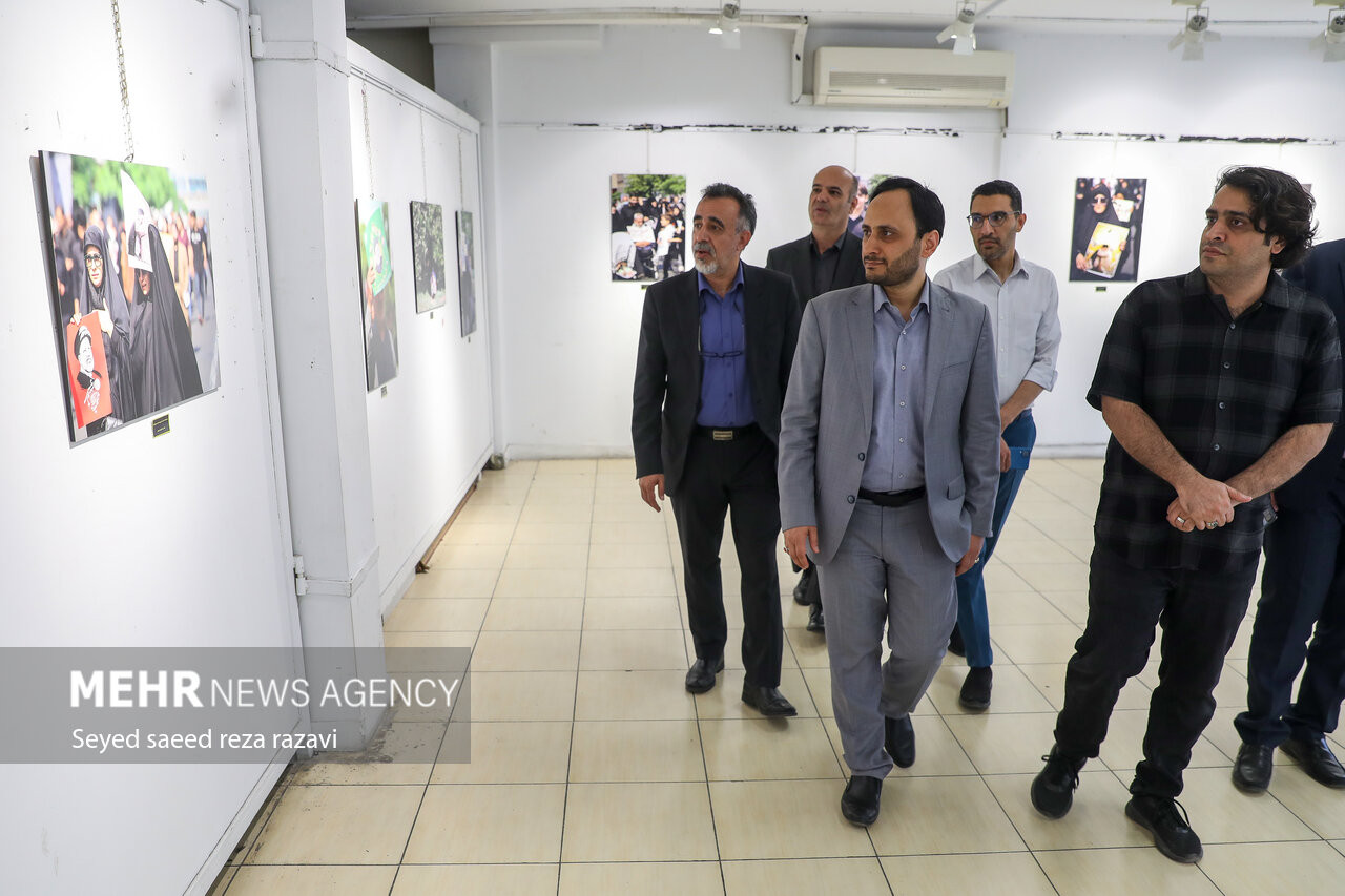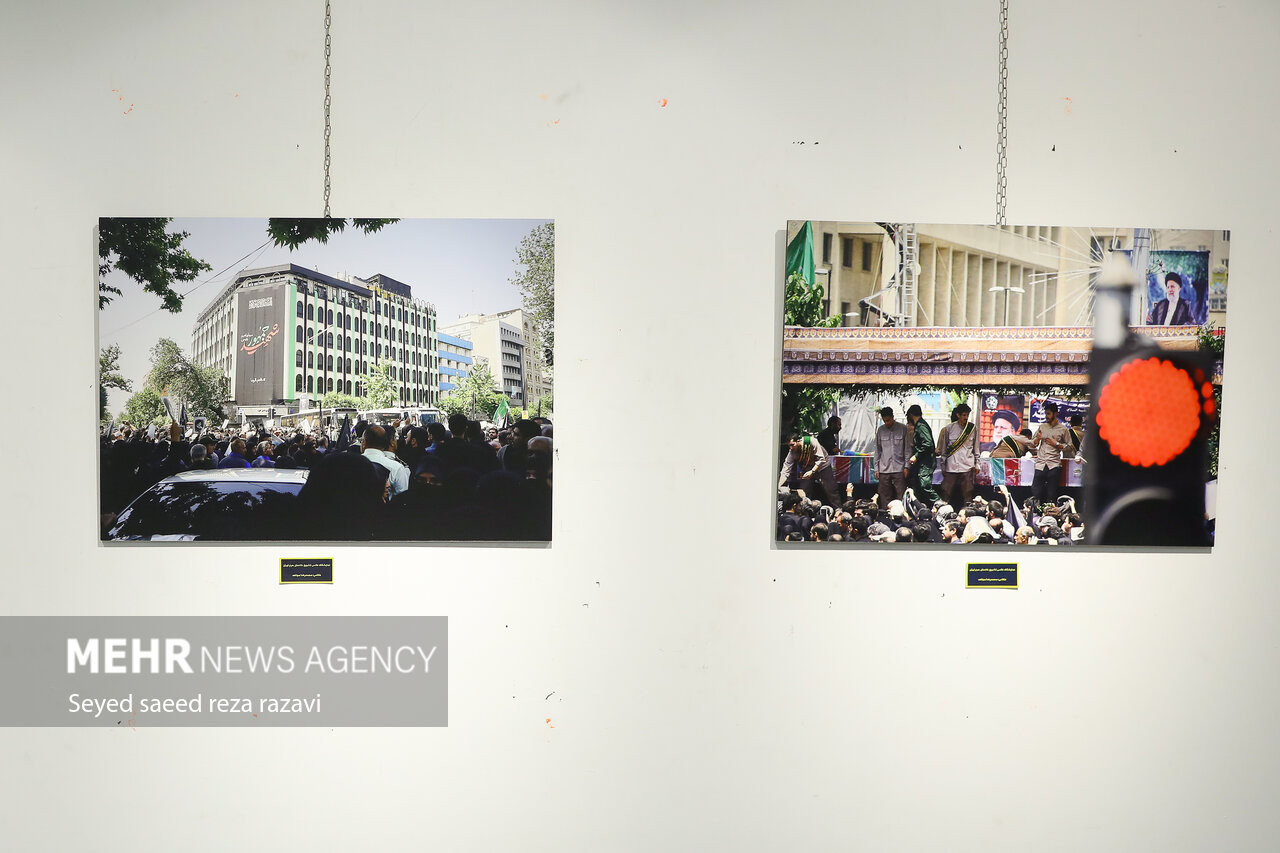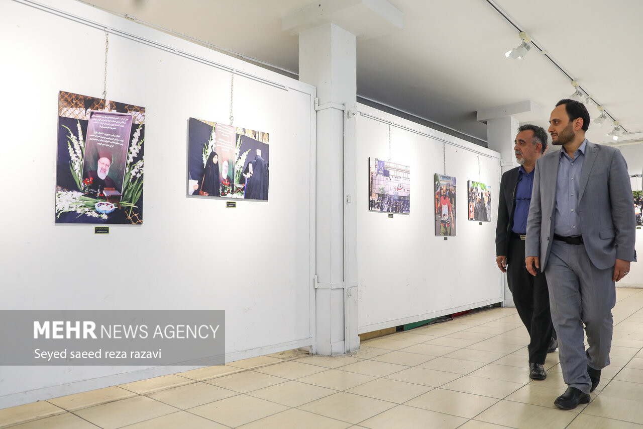نمایشگاه عکاسی تشییع خادمان حرم ایران بعدازظهر امروز یکشنبه ۲۸ اردیبهشت ماه ۱۴۰۴ در دانشگاه سوره افتتاح شد. عکس: سید سعیدرضا رضوی