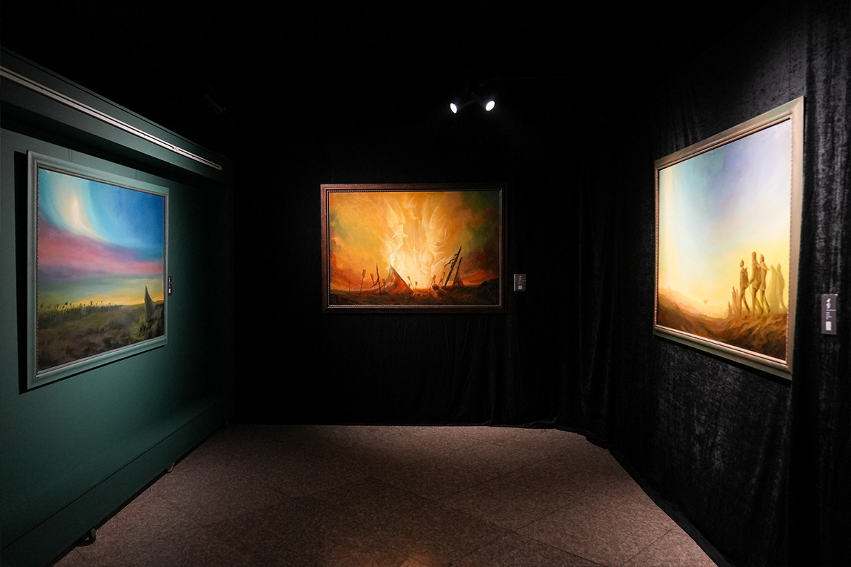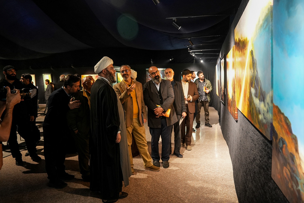 آئین افتتاح نمایشگاه آثار نقاشی عبدالحمید قدیریان با عنوان نقل «نور آمد» و با موضوع نَقل تصویری نابودی رژیم صهیونیستی به روایت قرآن، بعدازظهر امروز دوشنبه ۱۷ آذر ماه ۱۴۰۴ با حضور حجت الاسلام محمد قمی رئیس سازمان تبلیغات اسلامی، عبدالحمید قدیریان و هنرمندان در گالری حبیب‌اله صادقی حوزه هنری برگزار شد.