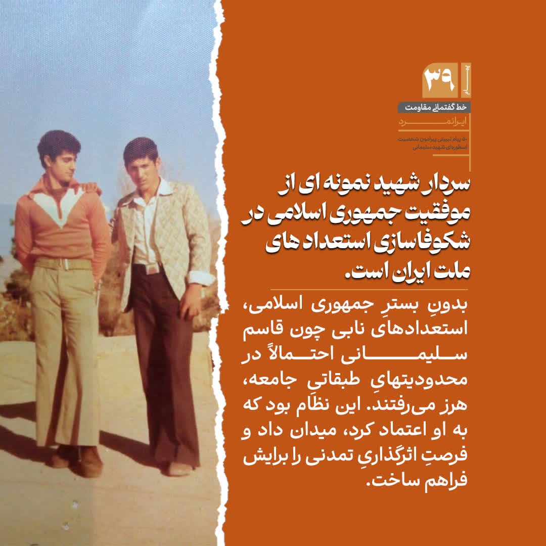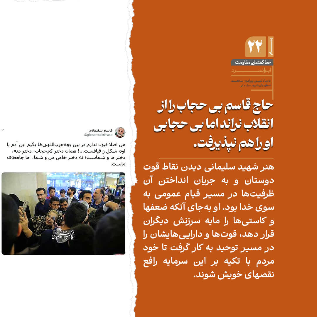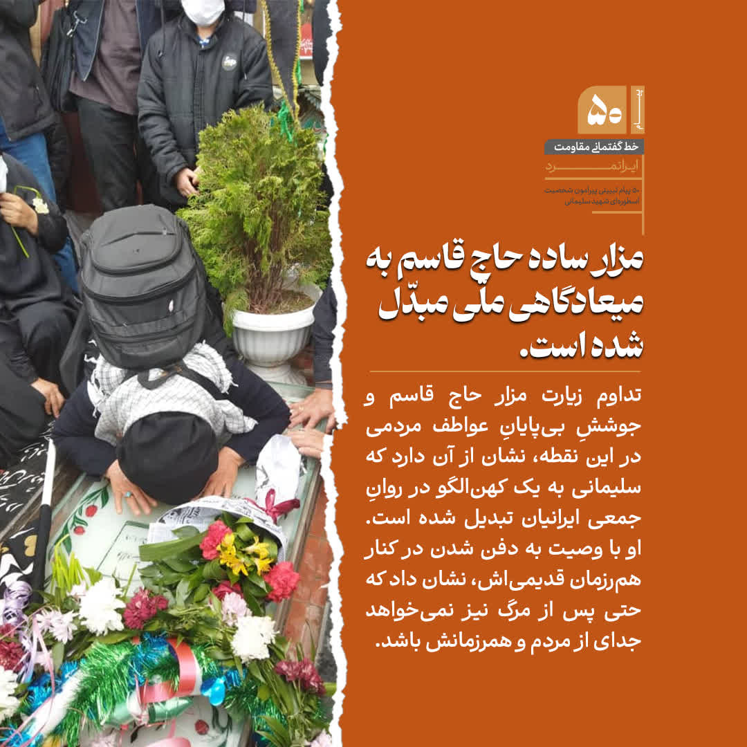 دعوتید به خواندن بخشی از 50 پیام تبیینی پیرامون شخصیت اسطوره‌ای شهید سپهبد حاج قاسم سلیمانی، روایتی کوتاه، از مکتب مردی که نامش با اخلاص، شجاعت و مجاهدت مخلصانه گره خورده است.
