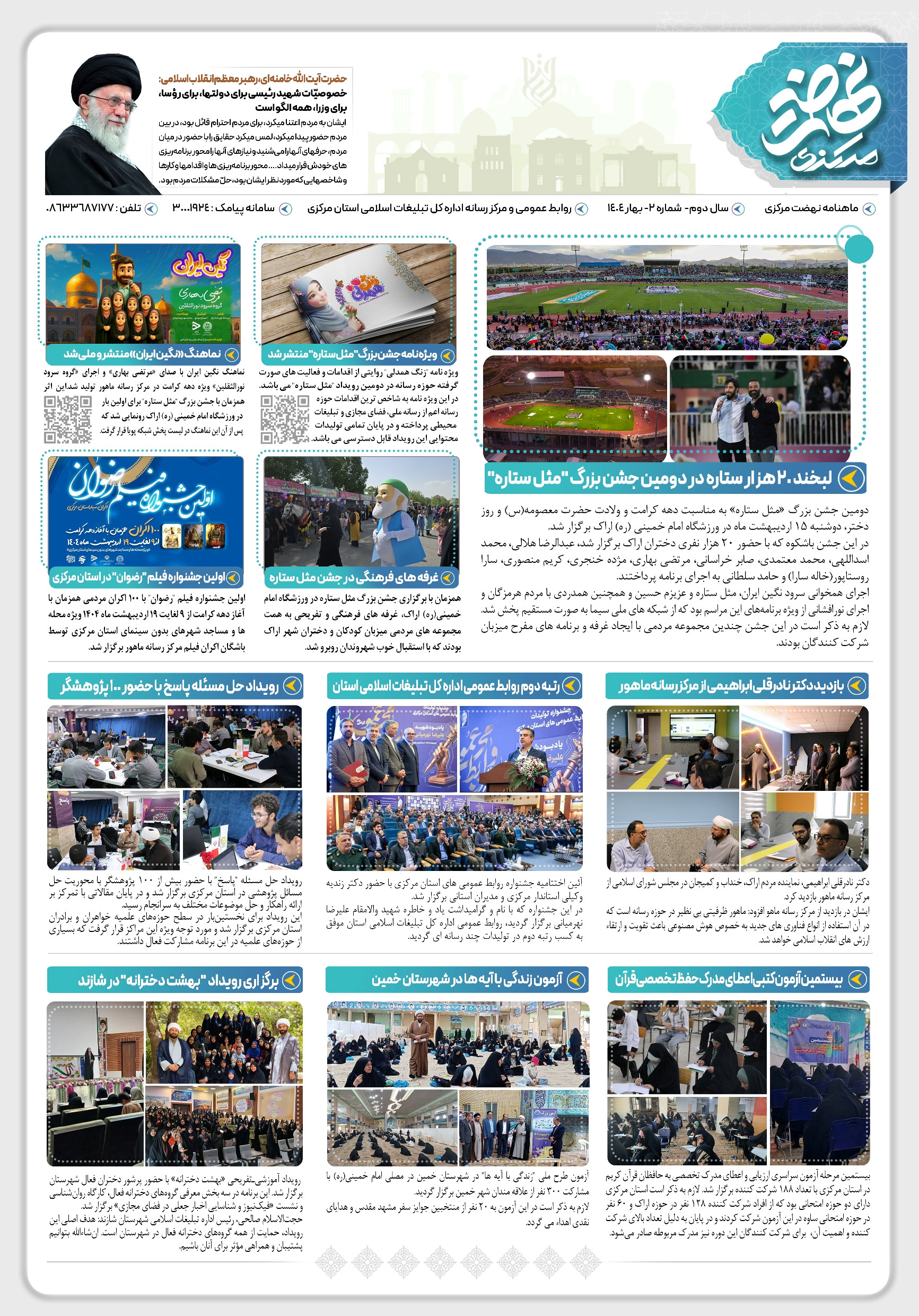 ماهنامه اردیبهشت ماه نهضت مرکزی منتشر شد