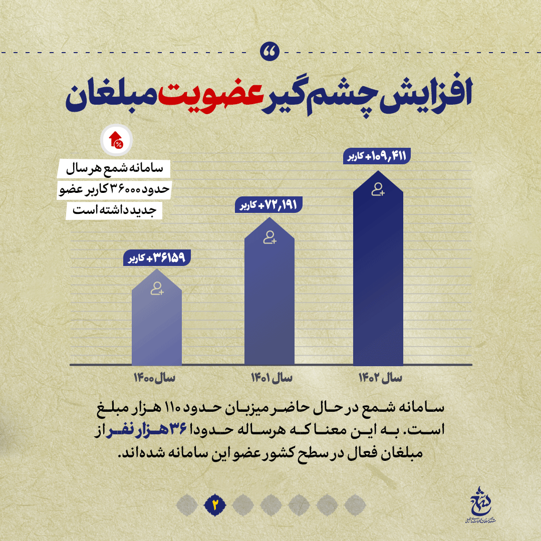 به گزارش روابط عمومی سازمان تبلیغات اسلامی، سامانه شمع به عنوان بزرگترین اطلس تبلیغی کشور پل ارتباطی میان مردم و مبلغین است که با هدف تسهیلگری جریان دعوت از سخنرانان مذهبی کشور و تحلیل و رصد عرصههای تبلیغی فعالیت میکند. در این شماره از نشریه دیجیتال نگاهی میاندازیم به سامانه شمع و برخی از اعداد و ارقام مرتبط به این سامانه را که این روزها بیش از پیش مورد توجه مبلغین و مبلغات، مسئولان فرهنگی و میزبانان مجالس مذهبی قرار گرفته است باهم مرور میکنیم.