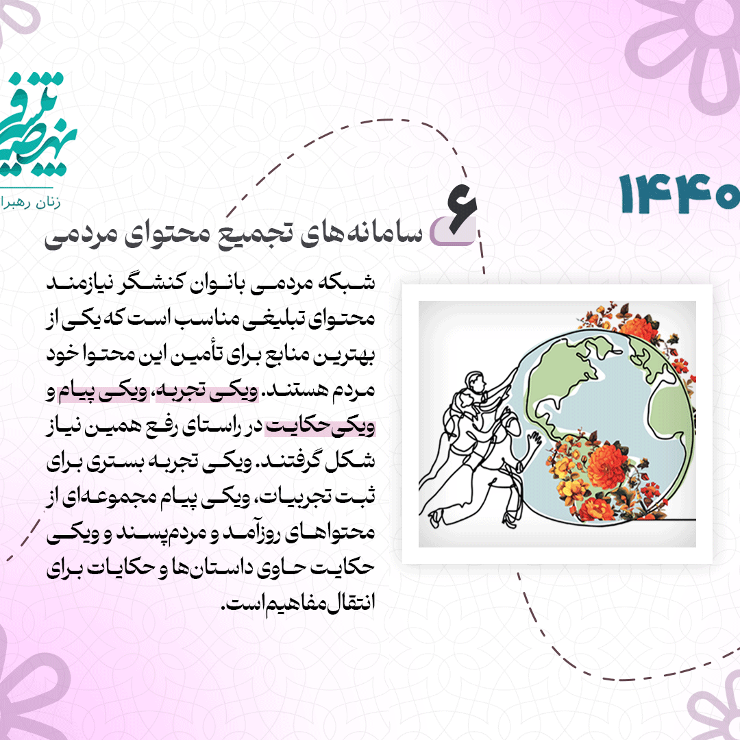 امور بانوان سازمان تبلیغات اسلامی و نهضت پیشرفت بانوان به طور خاص در راستای استفاده از ظرفیت بانوان در عرصههای متفاوت فرهنگی و اجتماعی در تلاشاند؛ در این شماره از نشریه دیجیتال مروری میکنیم بر شبکه ملی نهضت پیشرفت بانوان.