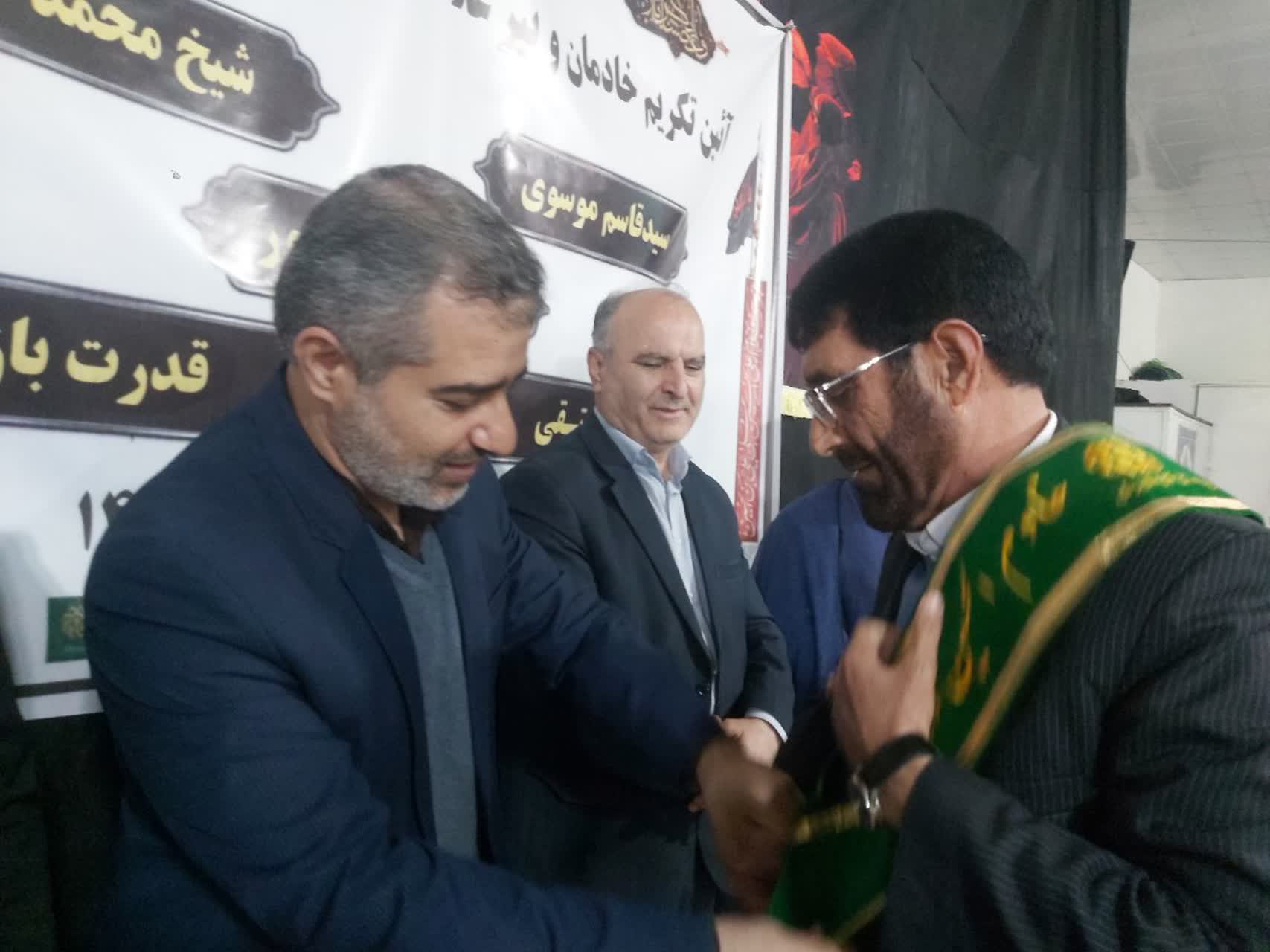 در راستای سلسله برنامههای عیادت، دلجویی، سرکشی و تکریم پیرغلامان حسینی (ع)، طی مراسمی با حضور حجت الاسلام «محمد علی نیا» امام جمعه شهرستان رومشکان، «حسین ابراهیمی» فرماندار شهرستان، حجت الاسلام «گراوند» رئیس اداره تبلیغات اسلامی شهرستان رومشکان، «مسلم رضایی پور» نماینده بنیاد دِعبل خُزاعی لرستان و دبیر شورای هماهنگی شبکه هیئت و تشکلهای دینی لرستان و… با اهدای لوح تقدیر مشترکی از طرف حجت الاسلام «محمد حسین وحیدی» مدیرکل تبلیغات اسلامی لرستان، امام جمعه شهرستان رومشکان و بنیاد دعبل خزاعی لرستان، تندیس ویژه پیرغلامان حسینی (ع)، حمایل خادمی حضرت اباعبدالله الحسین (ع) و هدایایی معنوی از پنج پیرغلام حسینی (ع) شهرستان، تکریم به عمل آورده شد و از سالها خدمات ایشان در حوزههای مداحی، نوحه خوانی و سرپرستی و خادمی نهاد هیئت، تقدیر و تشکر به عمل آورده شد.